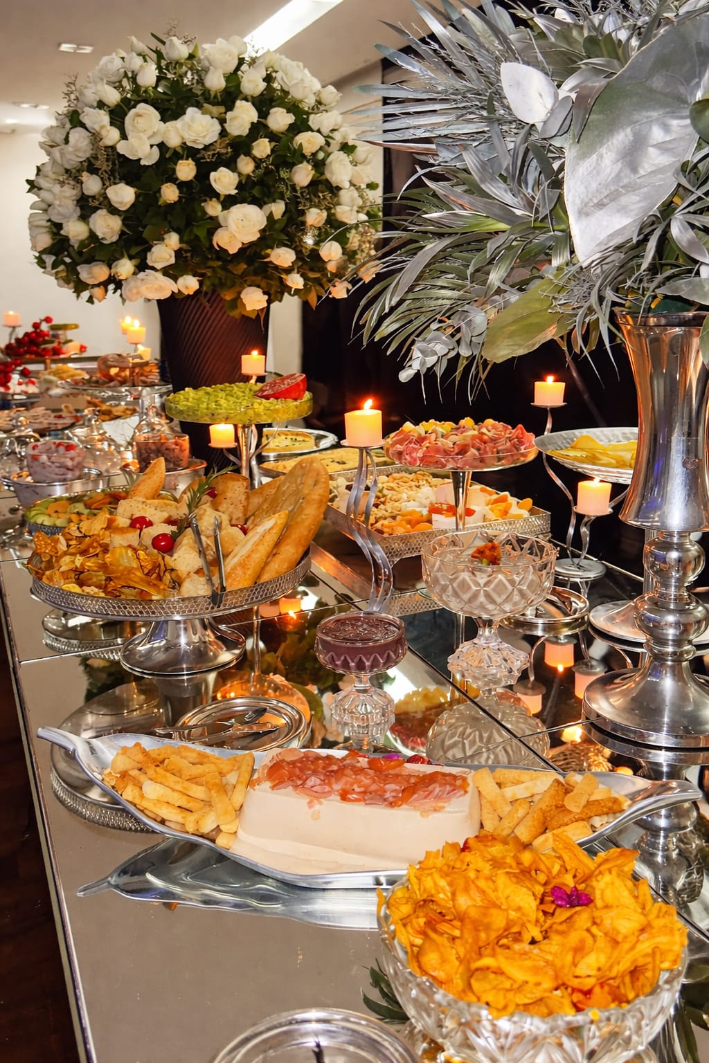 Buffet completo com pratos principais elaborados